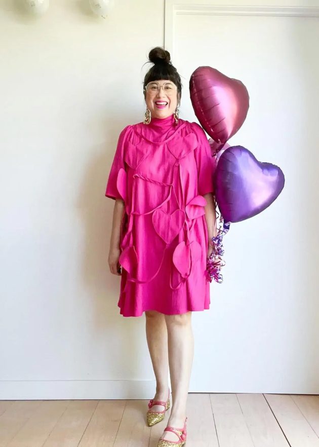 suechinglascelles created this fantastic fuchsia version with love heart embellishments made in the same fabric to wear to the True Love Luncheon in Brisbane.