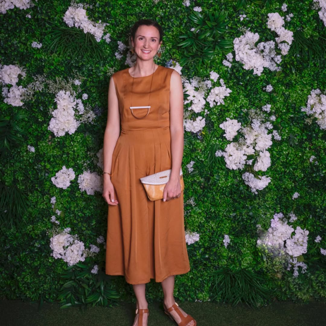 @willow_and_stitch created a beautiful ochre tencel twill from Maai Design for Melbourne Frocktails