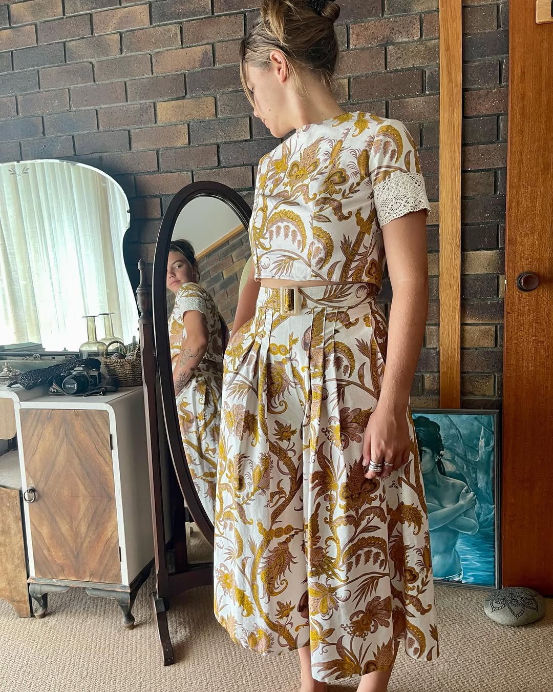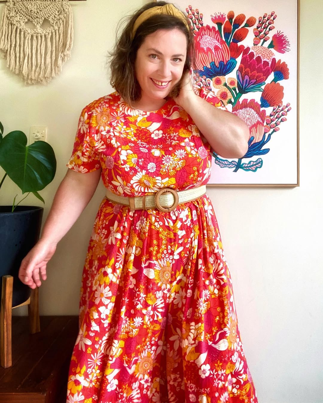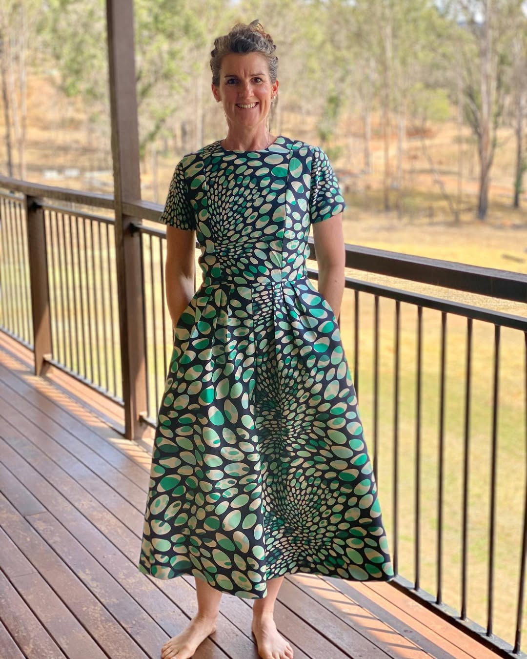 @rachael.mciver in a fun Gertie print from Spotlight and swapped the bodice for a square neckline