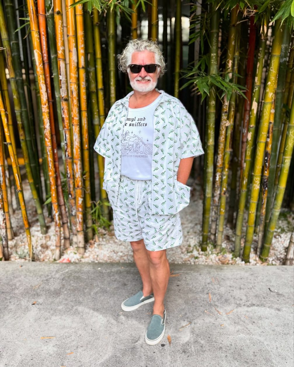 My latest summer ensemble features a camp shirt and shorts set in a lively cactus drill cotton. This easy-to-make combo is perfect for lounging by the pool or dancing at music festivals, offering both comfort and style.