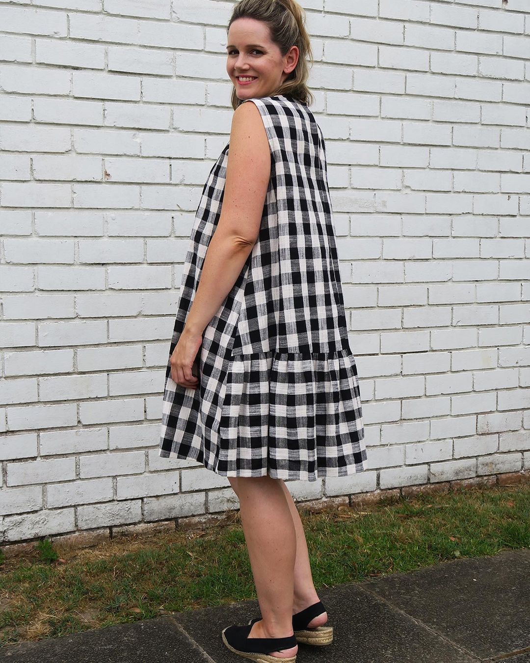 @bobbinandbaste played with a black and white cotton linen gingham from The Remnant Warehouse