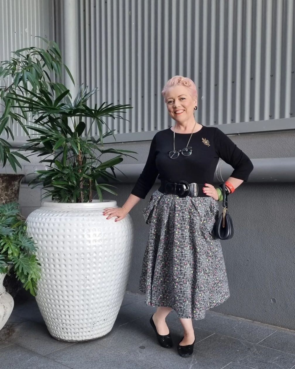 “I started sewing about 10 years ago. I made the decision to quit alcohol completely and so my husband bought me a pack of 10 classes with a local dressmaker who was teaching learn to sew classes. I was hooked from the first pair of hideous PJ pants I made.