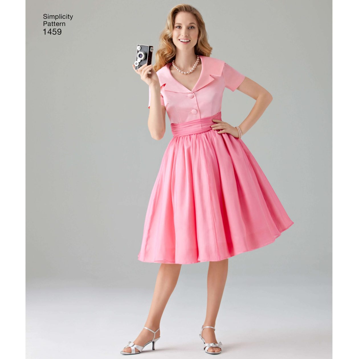A dress with a full gathered skirt is the ultimate 1950’s dress! This pattern has a wide lapel collar and it can be made with three quarter sleeves, short sleeves or sleeveless. And of course, add the cummerbund for extra fabulousness!