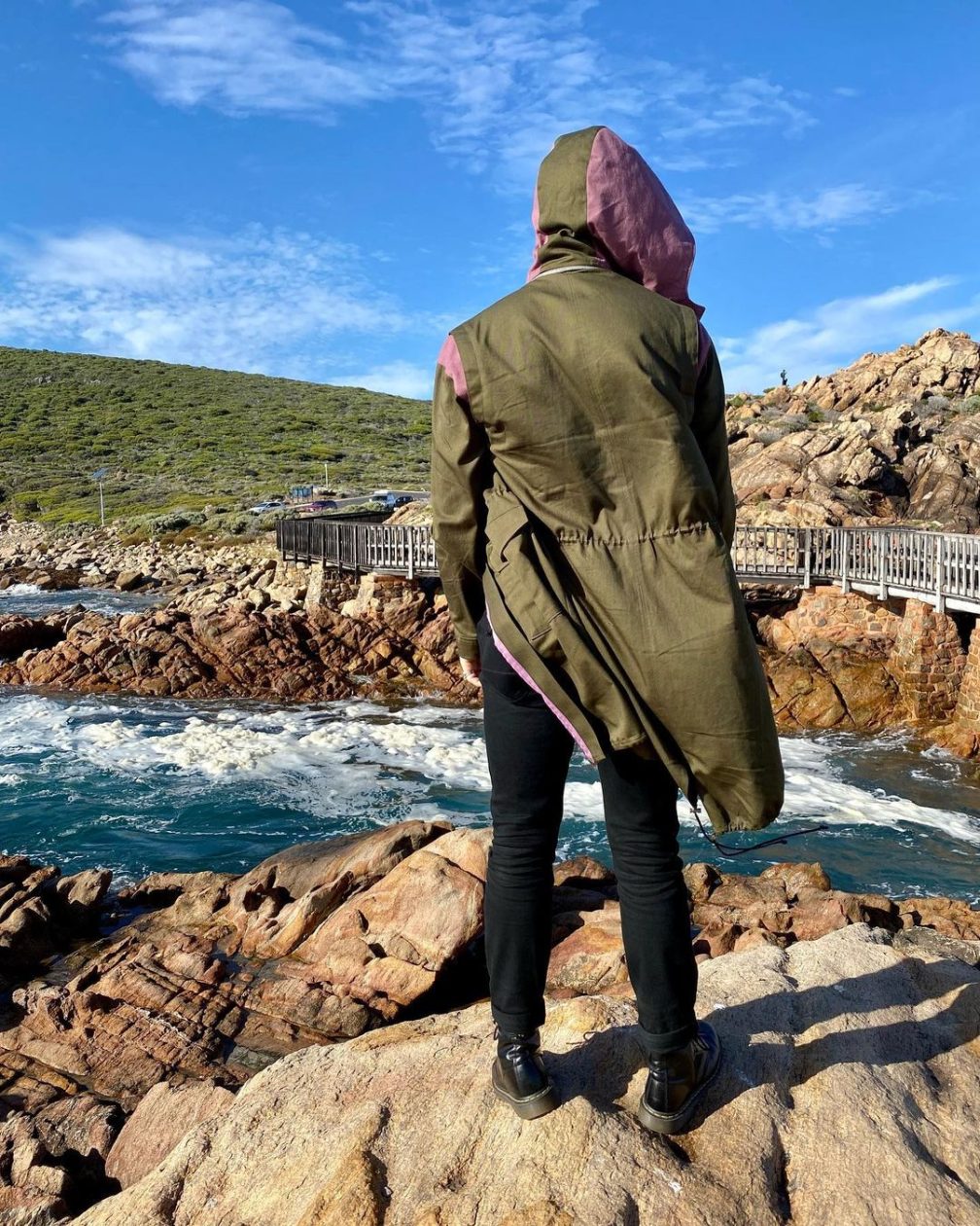 A mid to heavier weight fabric is the way to go for this pattern – it requires a bit more structure. Cotton drill, duck cloth or canvas would be great options and should have plenty of colours (or patterns) available. The construction of the upper back and the hood lends itself to a glimpse into colour blocking to add a little extra colour interest. Denim would also make a big statement jacket – just imagine all that glorious denim trailing behind you as you walk.