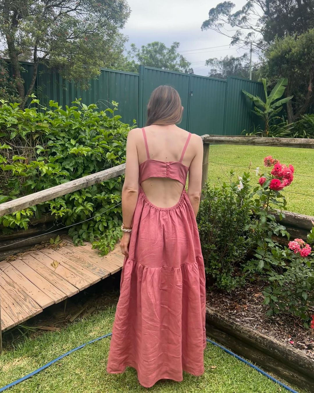 @sewemc transformed this Guava Vintage Finish Linen from The Fabric Store into the dress with matching buttons
