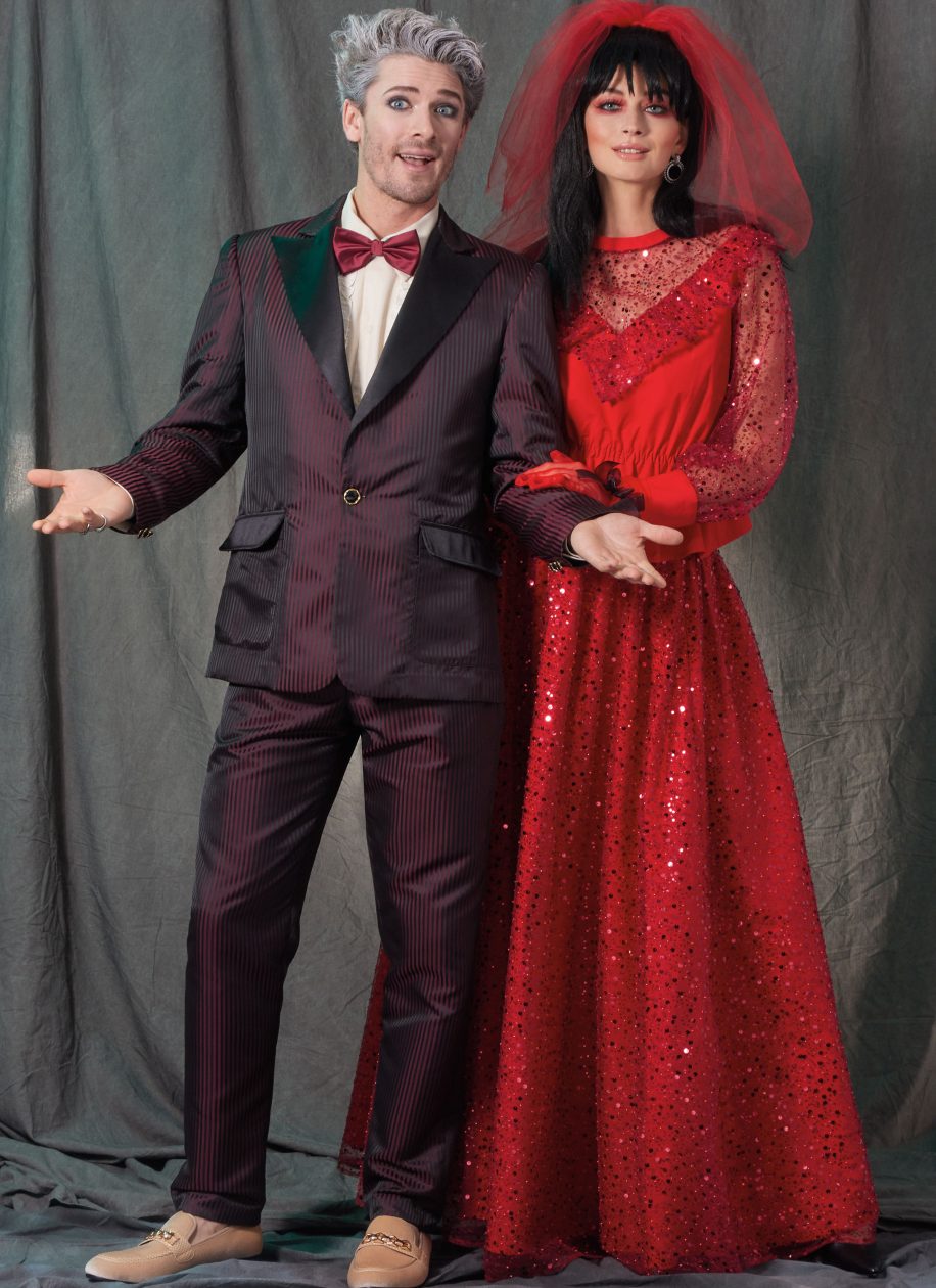 Transform into the Gothic Bride or Trickster Goth Groom by marrying patterns inspired by the romantic and dramatic style of Goth Noir fashion.