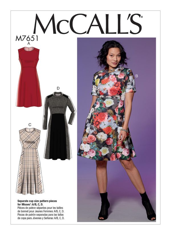 McCall’s Sewing Pattern M7651 Misses’ Dresses with Yoke, Princess Seams, and Contrast Options