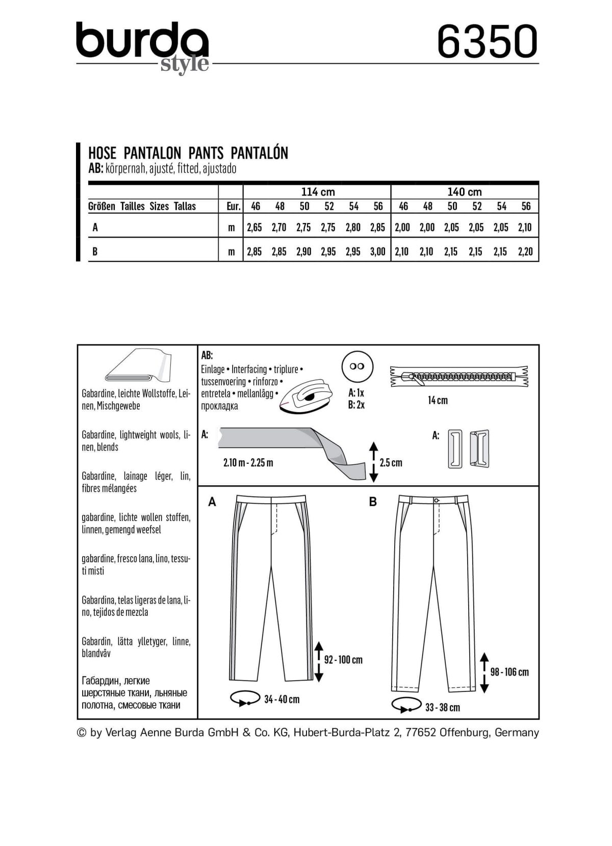 Burda Style pattern B6350 Men’s pants