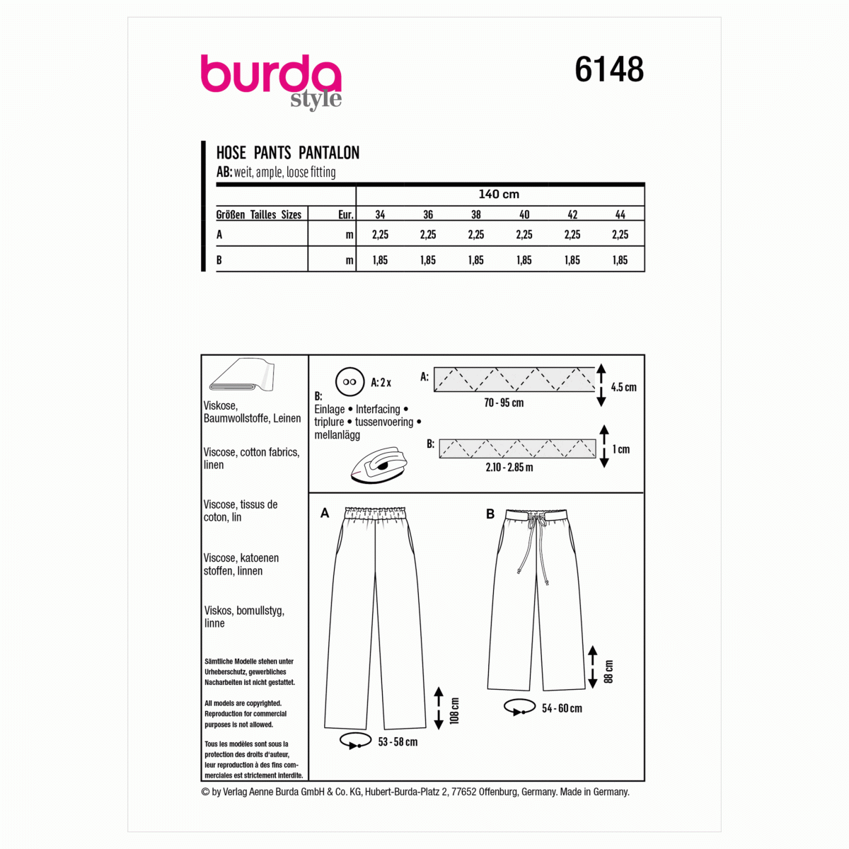 Burda Style pattern B6148 Misses’ Trousers in two lengths