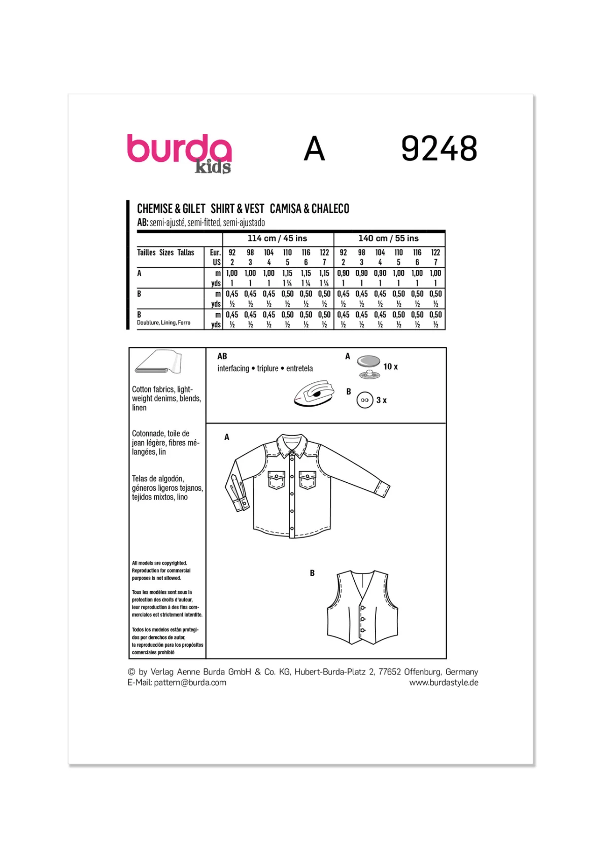 Burda Style Pattern B9248 Children’s Shirt and Waistcoat