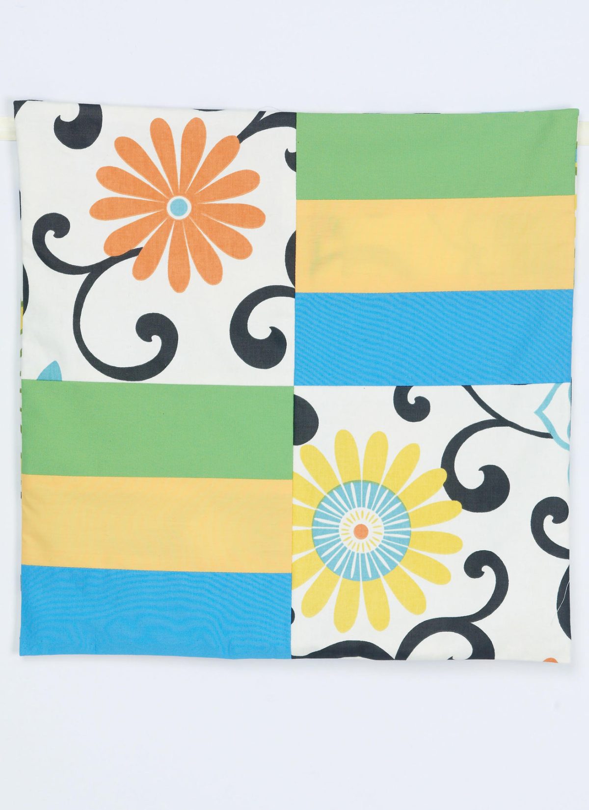 Six pillow covers with contrast front sections and back opening. All views have pillow insert.