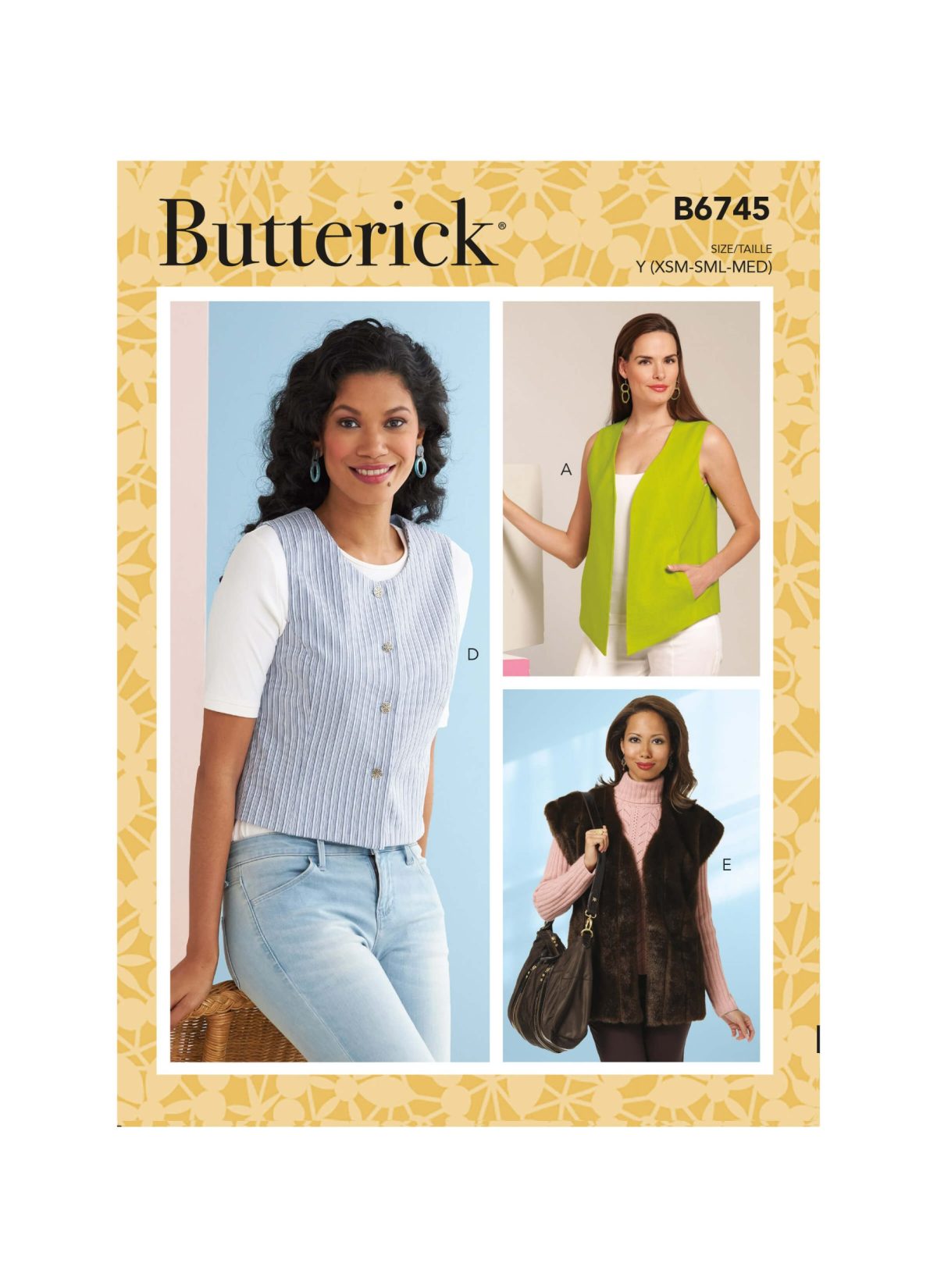 Butterick Sewing Pattern B6745 Misses’ Waistcoats in Five Styles