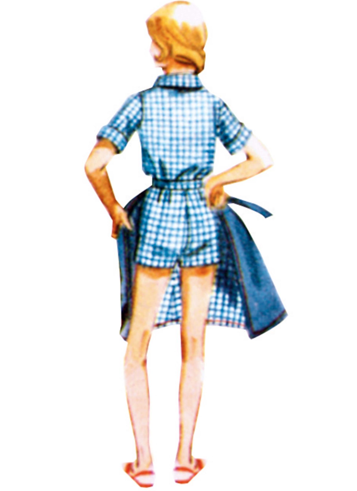 Vintage Butterick 1960’s’ sportswear coordinates. Wrap-a-round skirt and jumper lined to edge, blouse and shorts. Top stitch trim. Authentic Vintage Reproduction includes additional sizes and cutting layouts.
