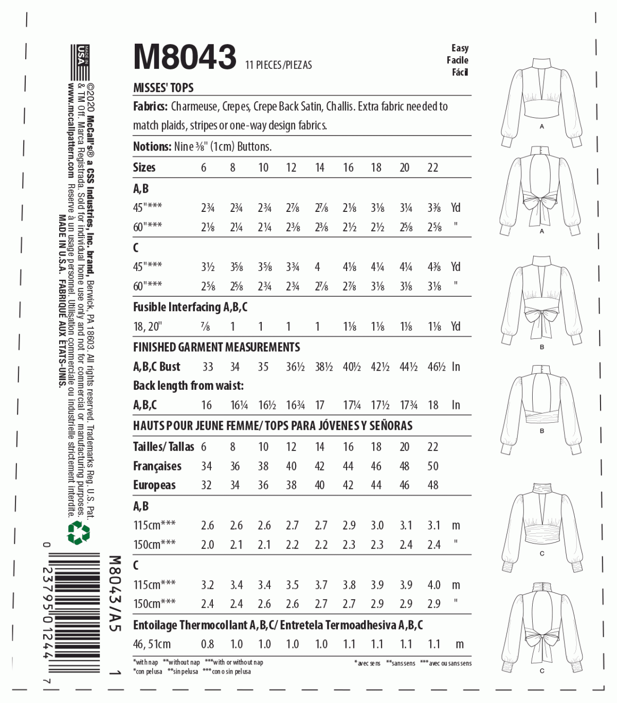 McCall’s Sewing Pattern M8043 Misses’ Tops #AlisterMcCalls