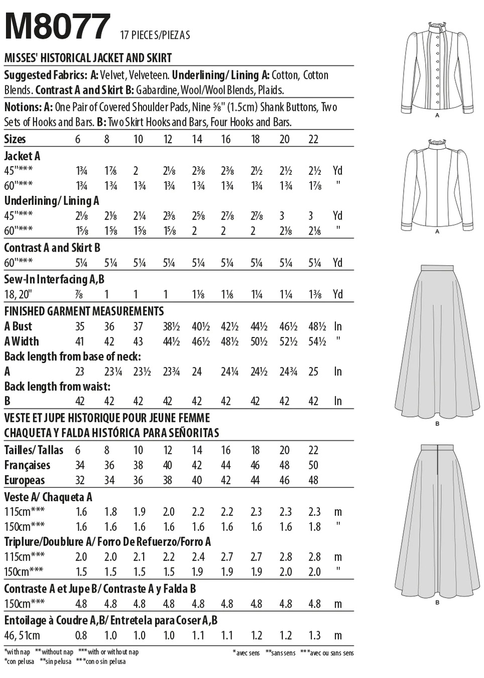 McCall’s Sewing Pattern M8077 Historical Jacket and Skirt sewing pattern