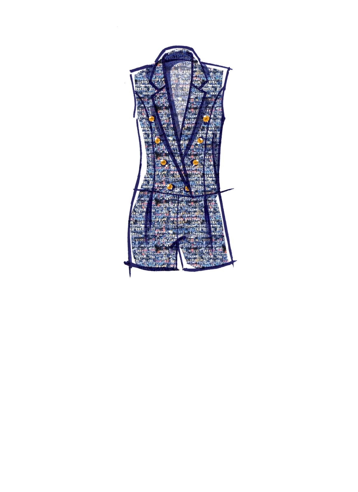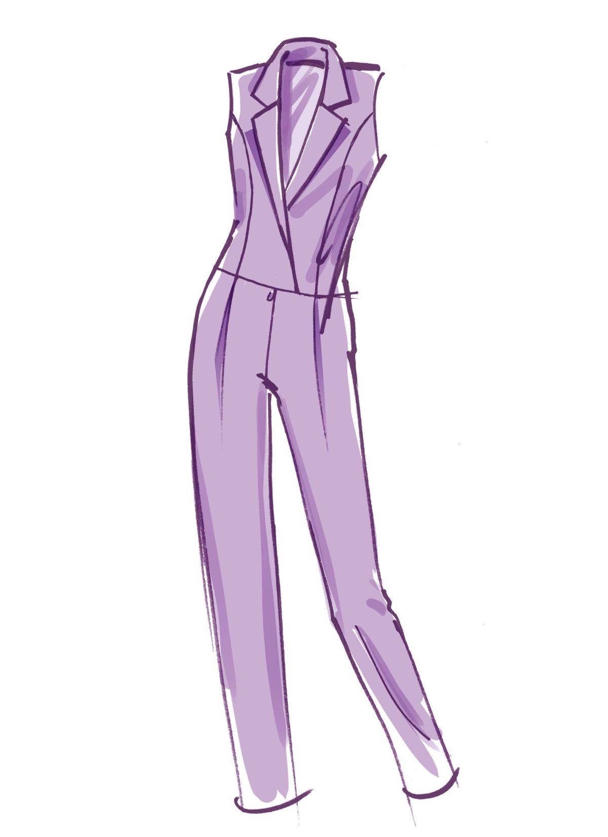 Misses’ Tuxedo-style jumpsuits or playsuit with notched collar, pleats, invisible zip and side pockets. A/B, C, D separate cup size pattern pieces.