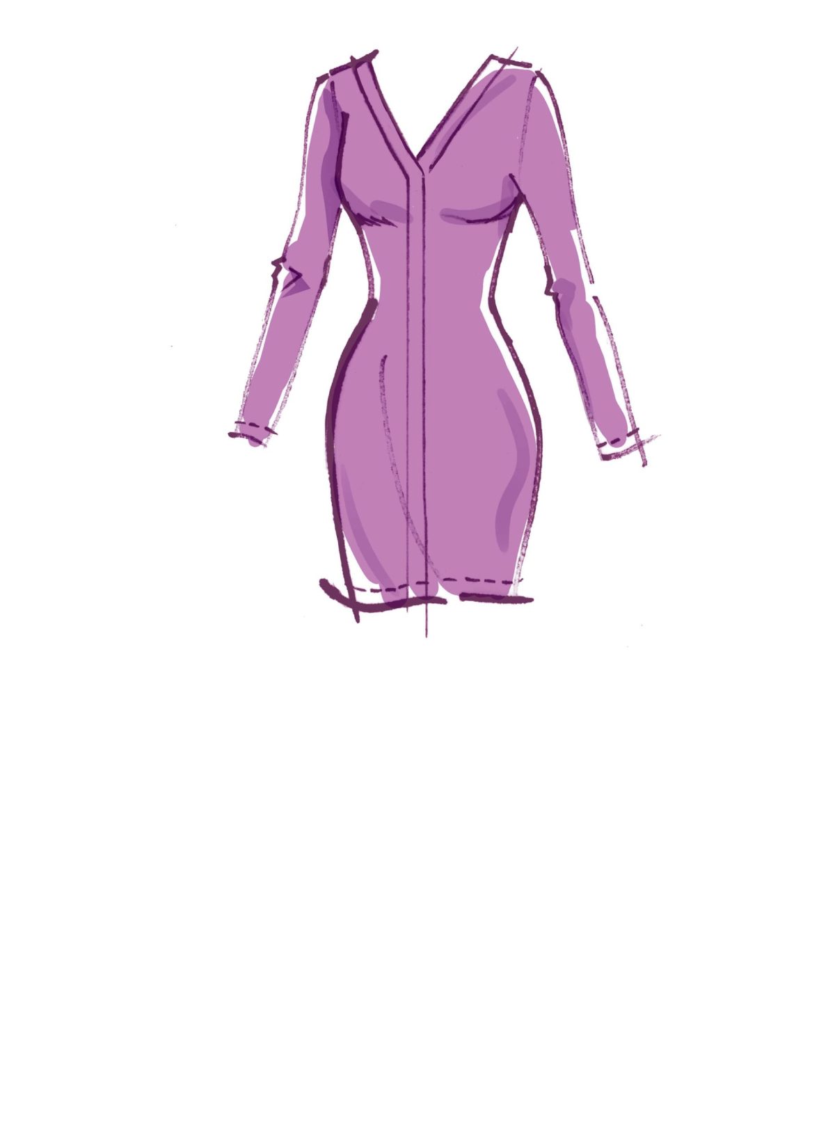 Misses’ ‘Body-con’ Dresses in short, midi or long lengths with half or long sleeves. View B: colour block.View B, C: decorative buttons.
