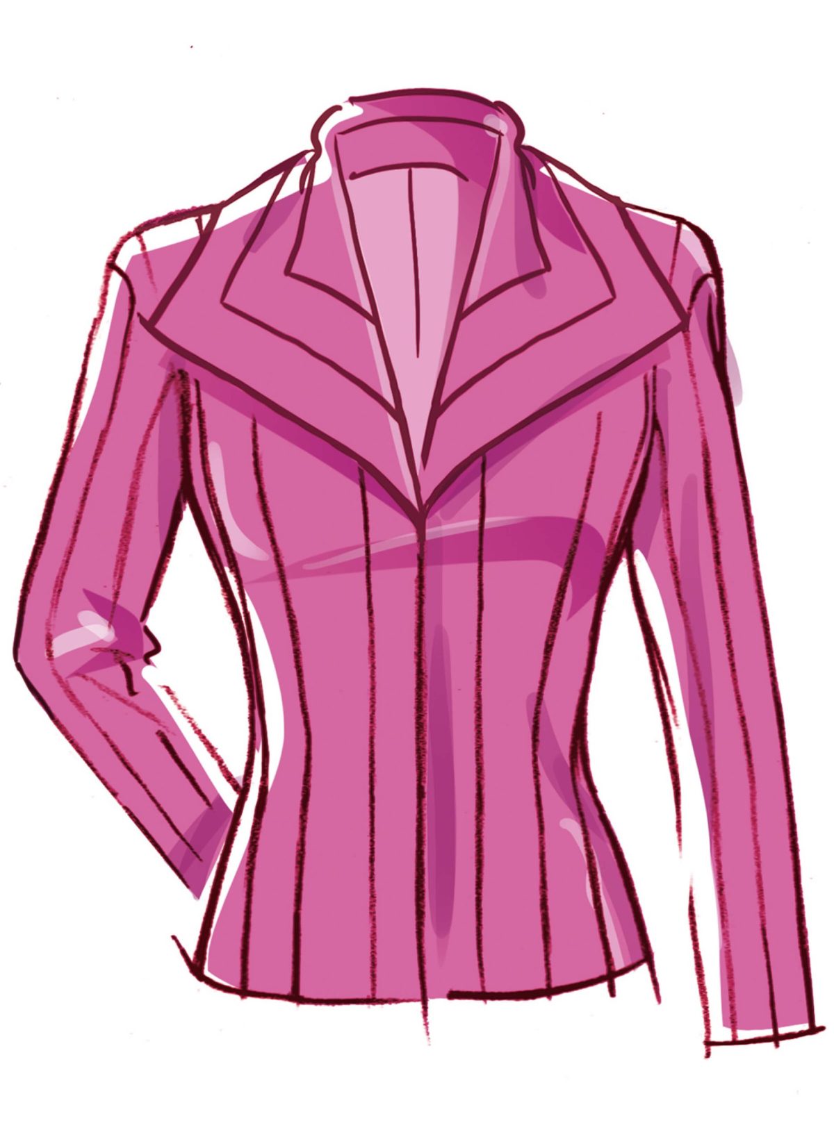 Trendy boleros and jacket with seaming details have wide collar and shoulder pads. View B bolero has contrast. Views A and B have open front, View C has sew-on snaps closures.