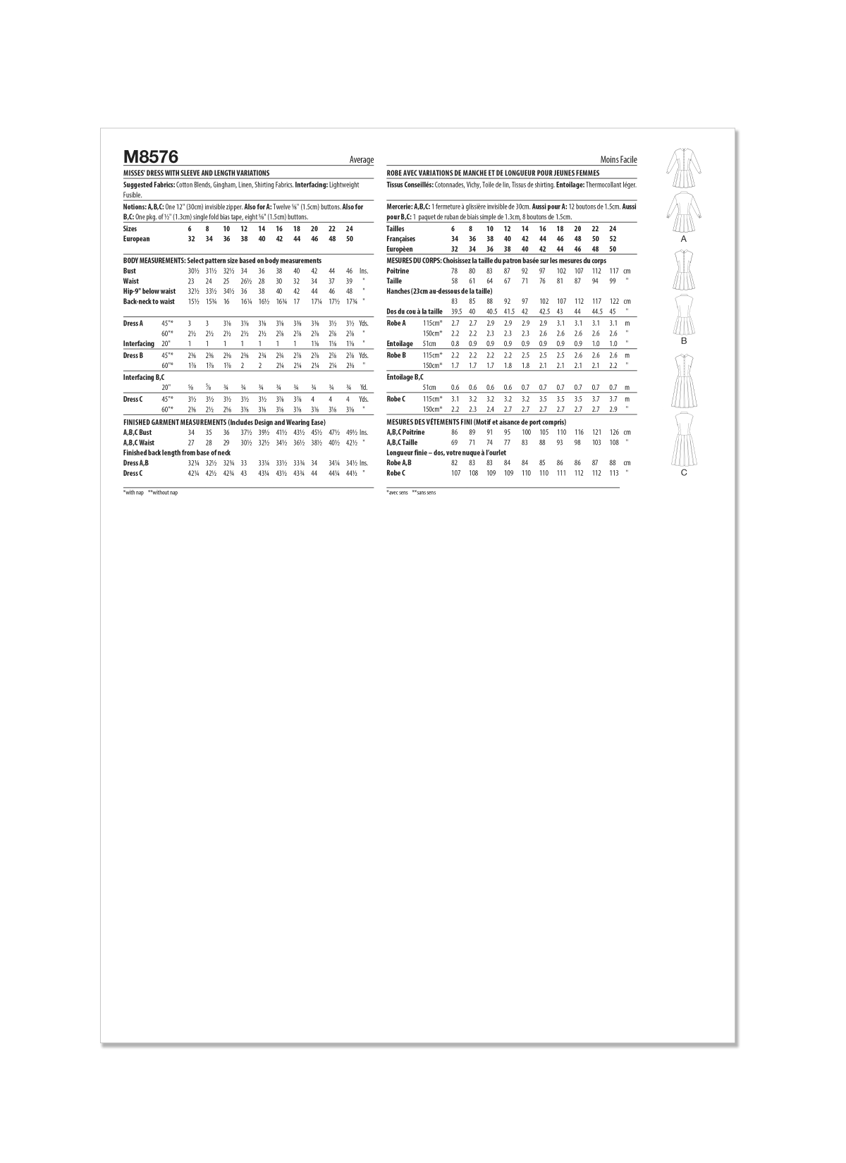 McCall’s Sewing Pattern M8576 Misses’ Dress with Sleeve and Length Variations