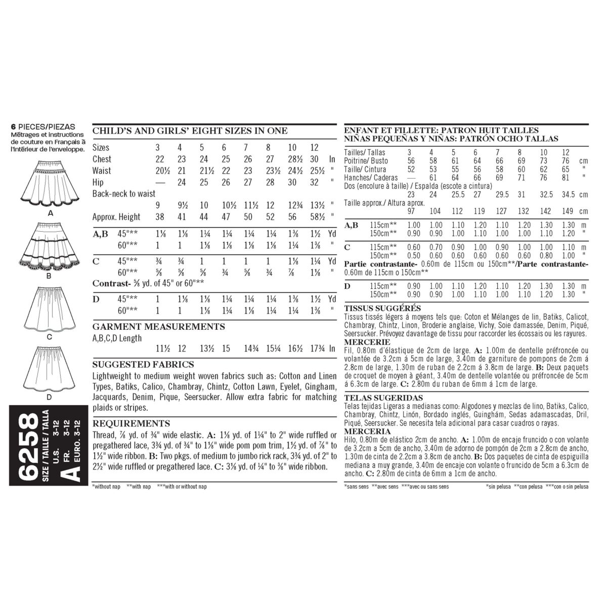 Child’s and girls’ circle skirts have elastic waistline and are the perfect piece to customize with trims, lace, ribbon, bows and contrast fabrics.