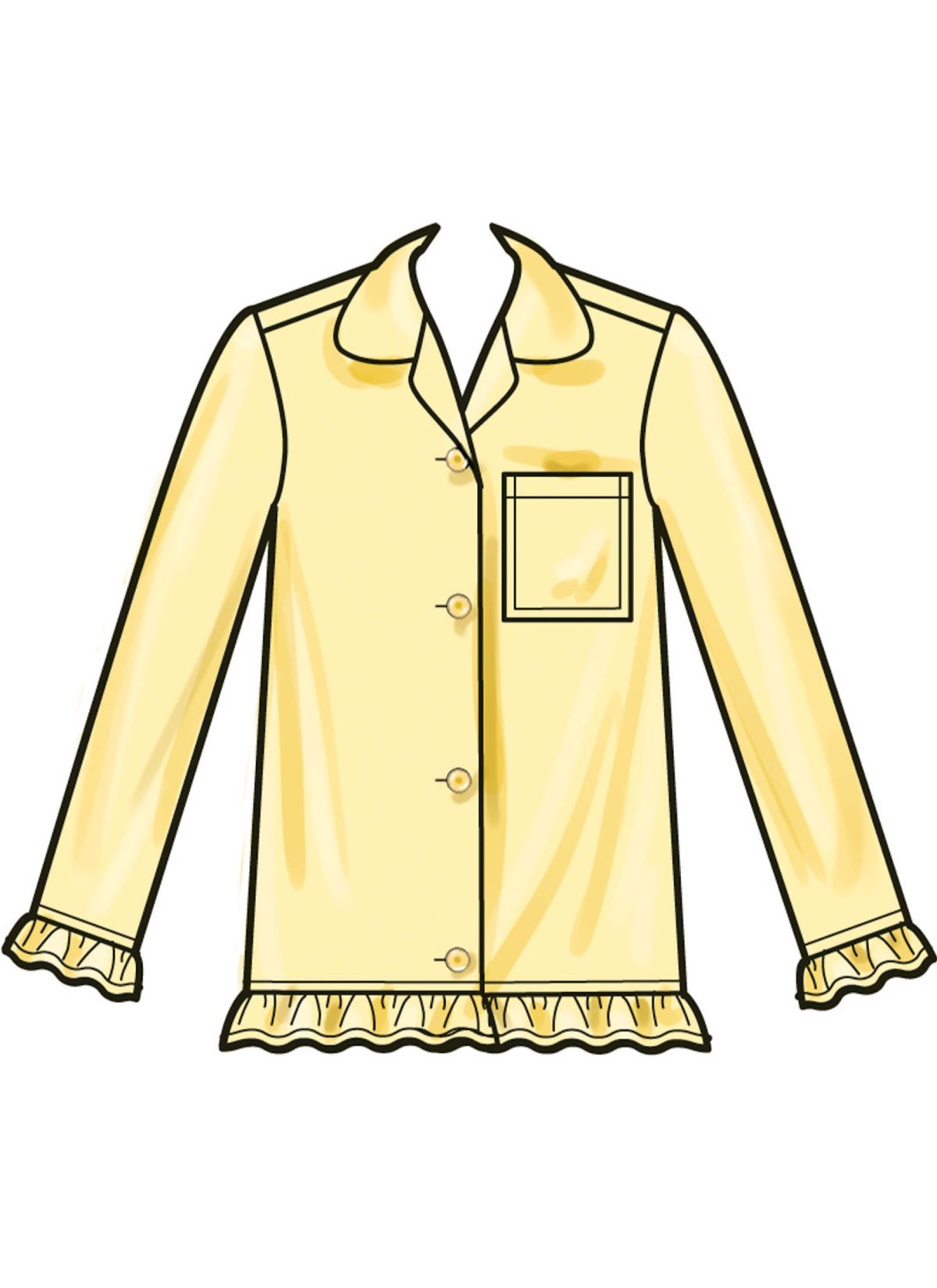 Lounge tops, gown, shorts and pants hems are trimmed with self-ruffles. Button closure tops and gown have shoulder seams that come to the front. Shorts and pants have elastic waist. Purchase sizes separately for Children’s and Girls.