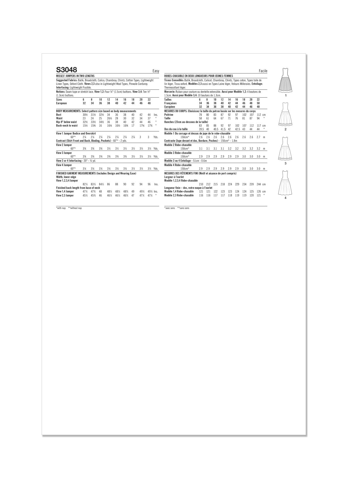 Simplicity Sewing Pattern S3048 Misses’ Jumpers in Two Lengths