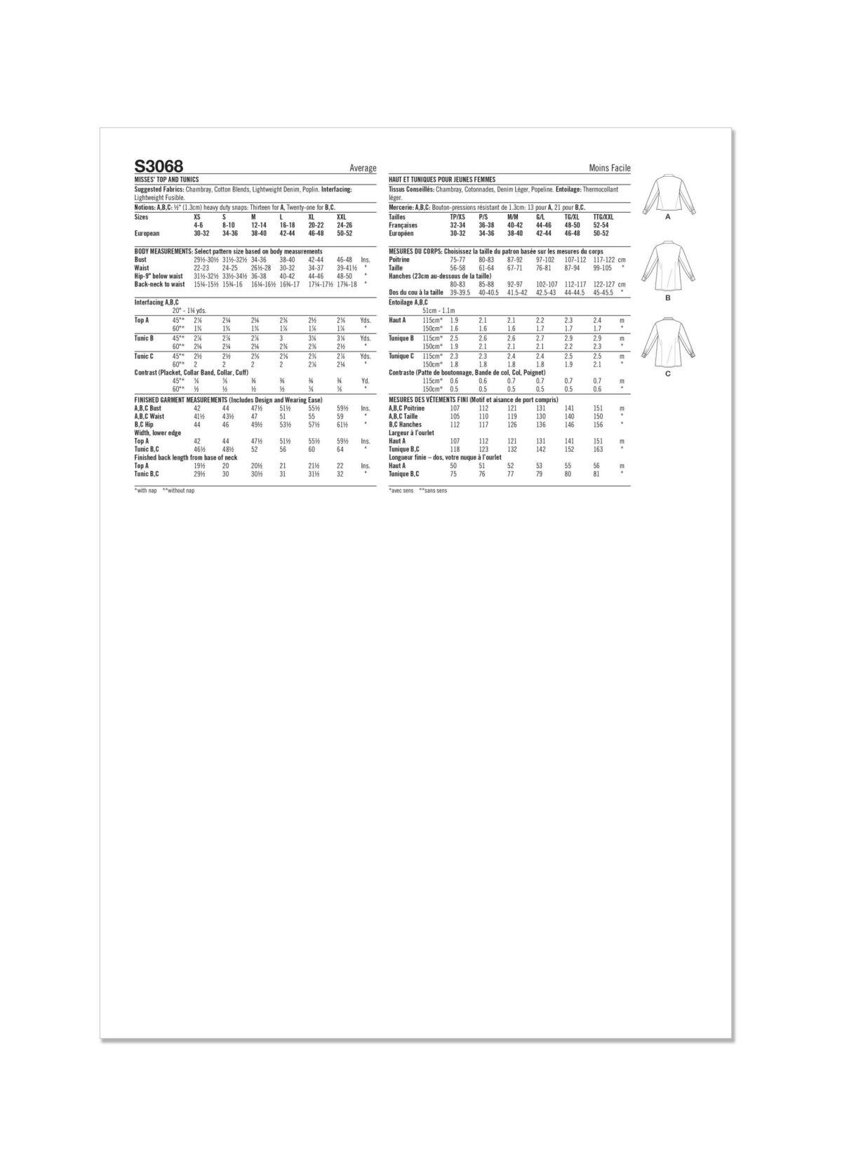 Chambray, Cotton Blends, Lightweight Denim, Poplin. Interfacing: Lightweight Fusible.