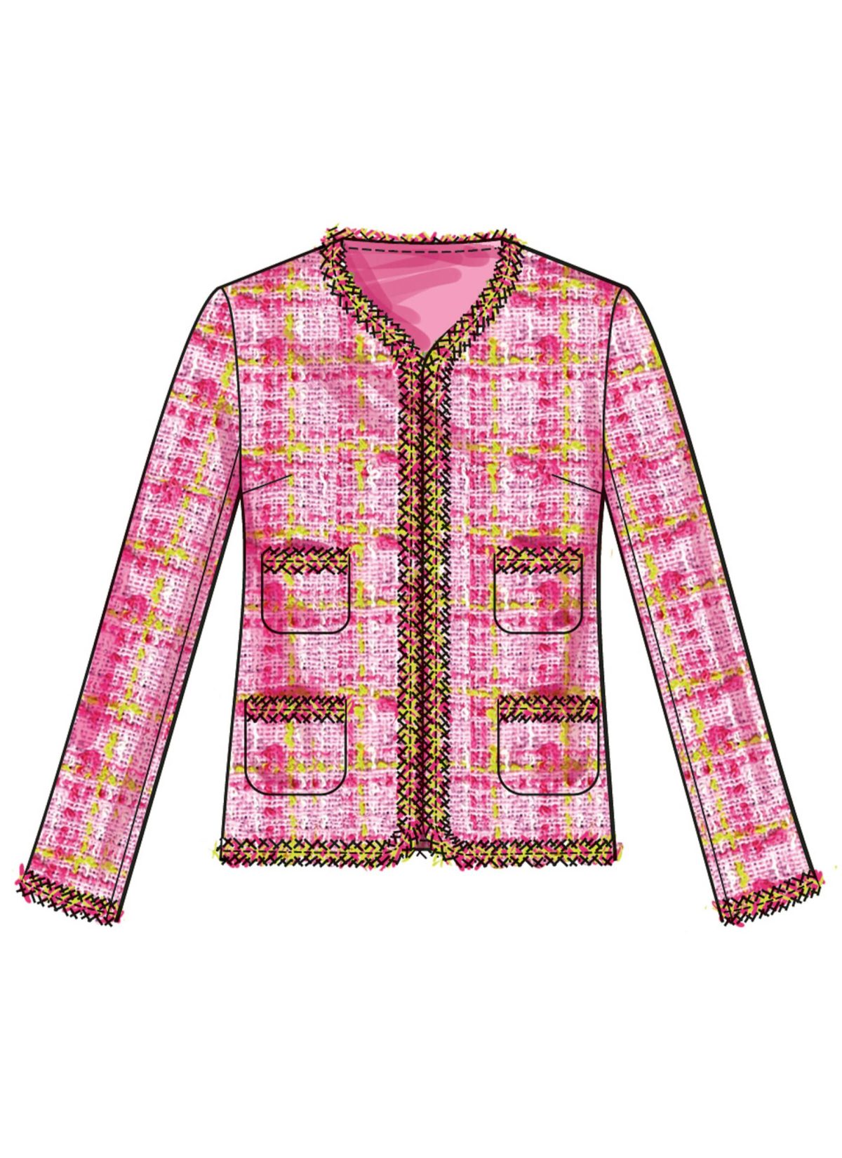 Bouclé, Linen Blends, Tweed. Lining A: Crepe de Chine, Jacquard. Interfacing: Lightweight Fusible.