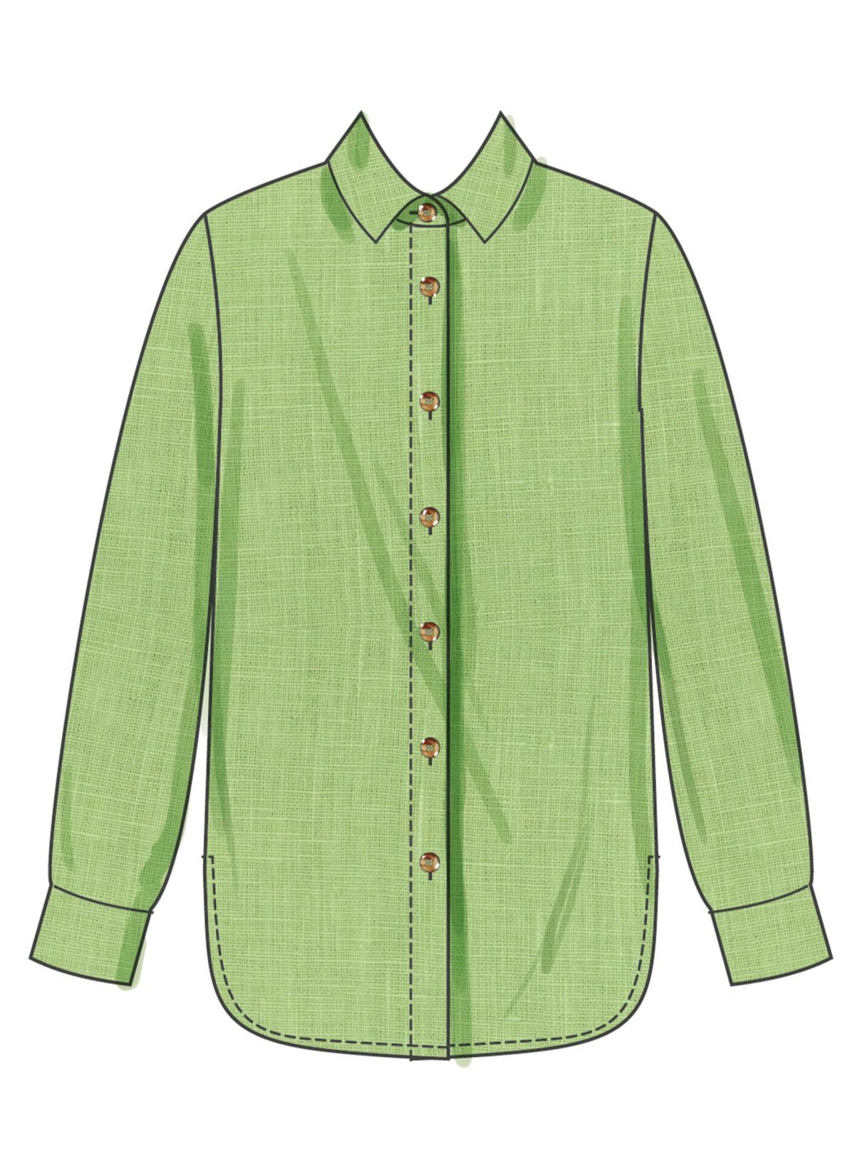 Chambray, Cotton Shirting, Crepe, Linen, Poplin, Taffeta. Interfacing A,B: Lightweight Fusible.