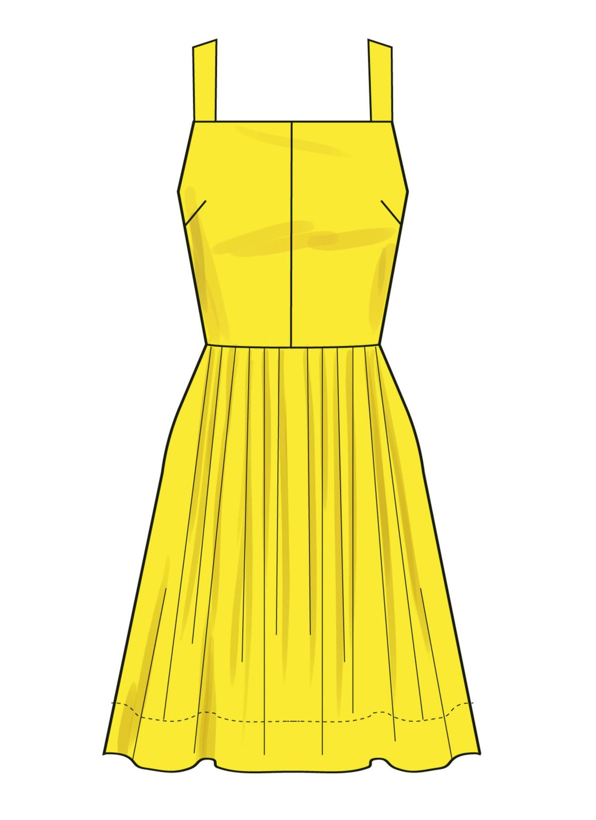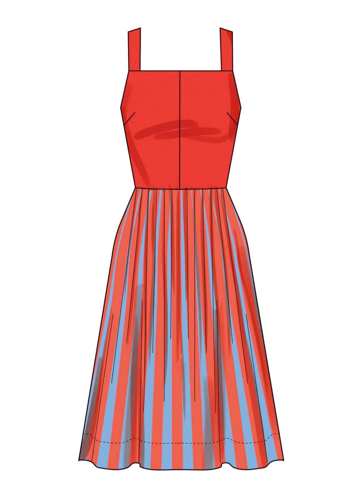 Fitted dress has lined bodice, pleated skirt, straps with back button detail and invisible zipper closure. Dress comes in mini, midi and ankle length. View B dress has contrast at the bodice.