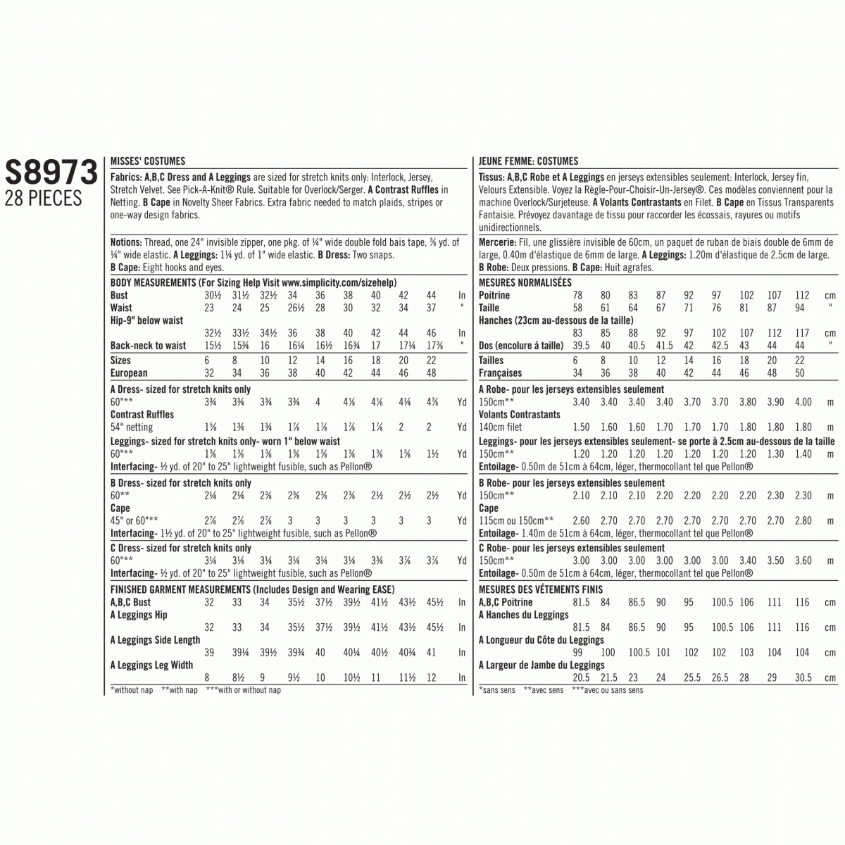Simplicity Sewing Pattern S8973 Misses’ Halloween Costume