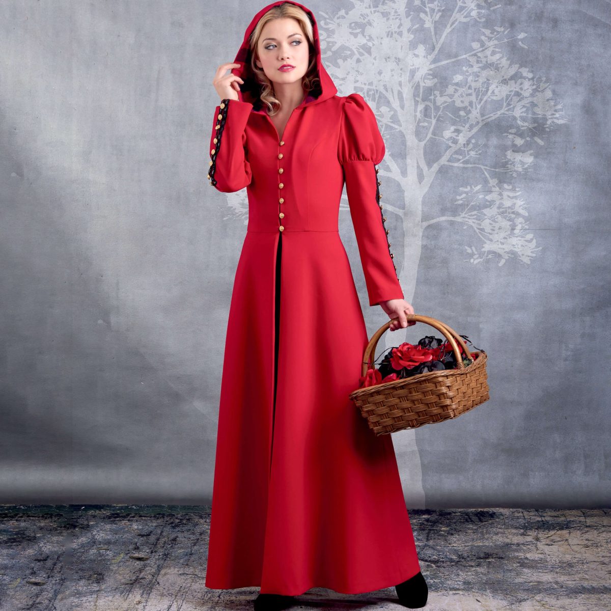 Misses’ Maxi-Coat Costume. Coats fasten at front and have collar, hood and sleeve options. Optional sash.