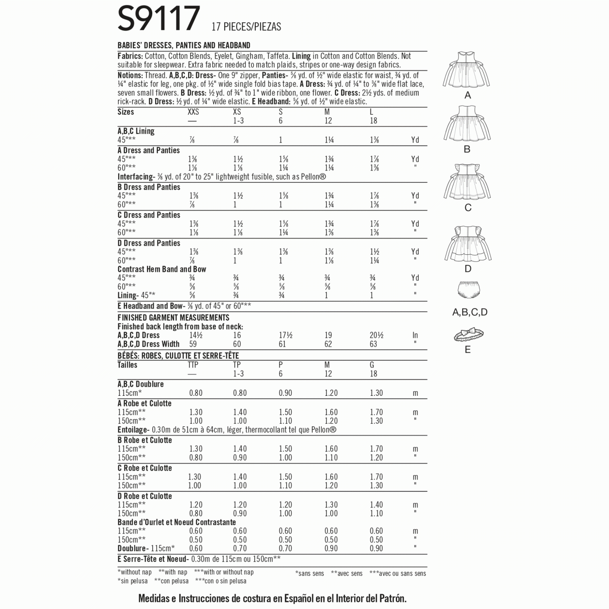 Simplicity Sewing Pattern S9117 Babies’ Dresses, Panties & Headband