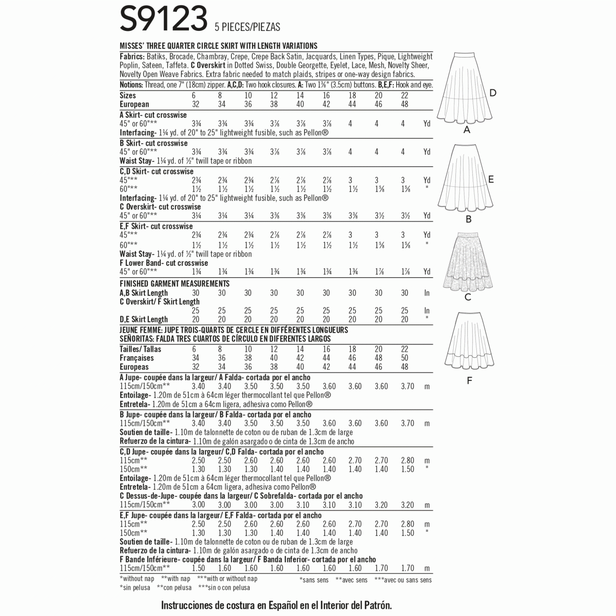 Simplicity Sewing Pattern S9123 Misses’ Skirts