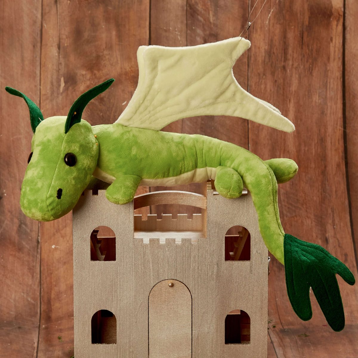 24″ long plush dragons have elongated bodies and lightly poly pellet-weighted tails and legs to drape and shape with ease. Fused felt horns, tail tips and spikes add just the right touches. Shank button eyes and hand embroidered nostrils give personality. Petal-themed dragon C has silk flower accents for a pretty twist on the classic game guardian.