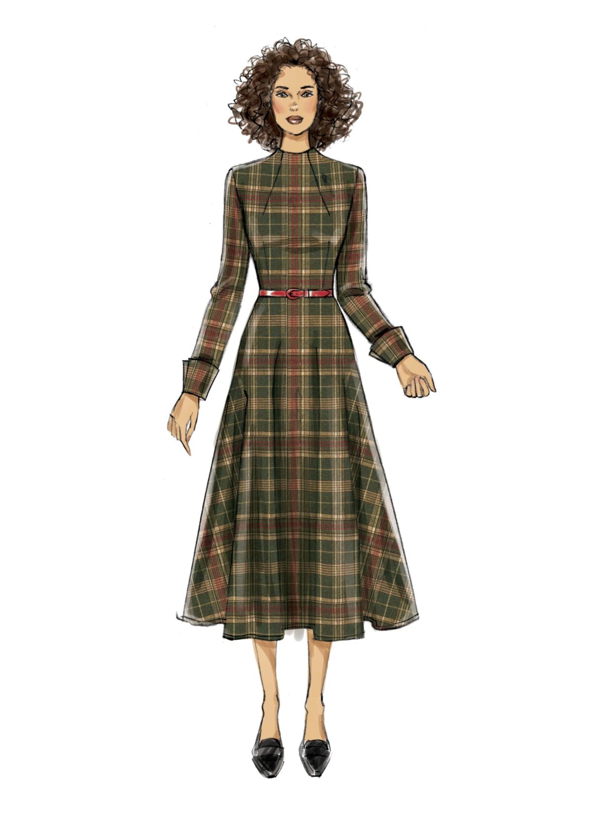Partially lined dresses (close-fitting through the bust), have back invisible zipper, pockets, and sleeve variations. Separate pattern pieces are included for cup sizes A, B, C, and D.