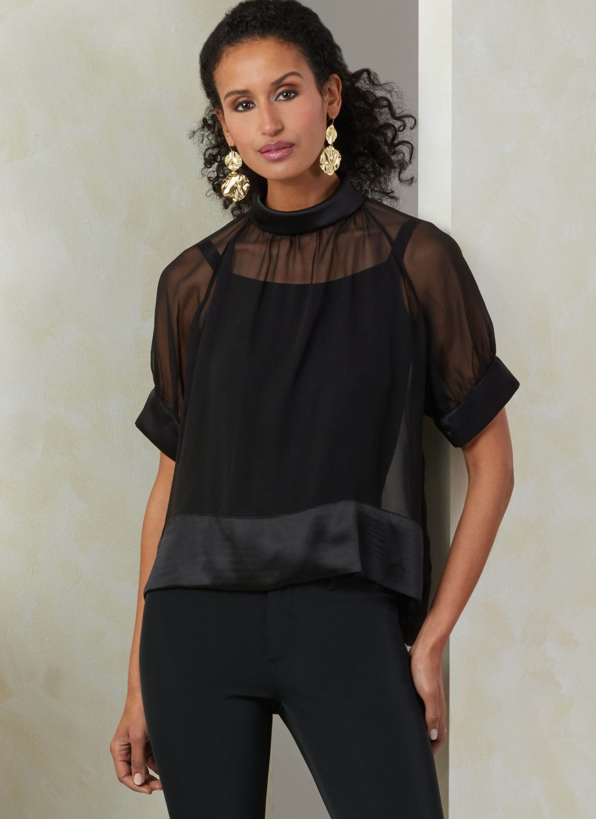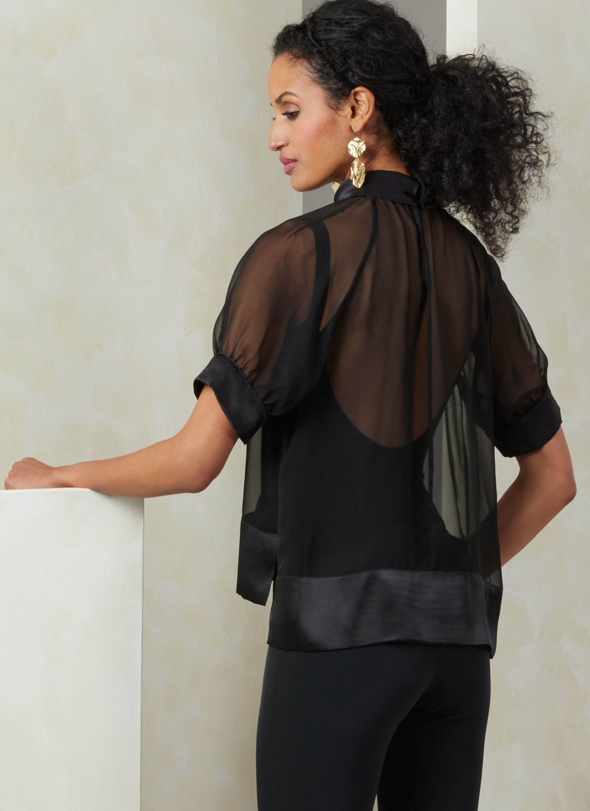 Charmeuse, Chiffon, Crepe de Chine, Georgette, Voile. Interfacing: Lightweight Fusible.